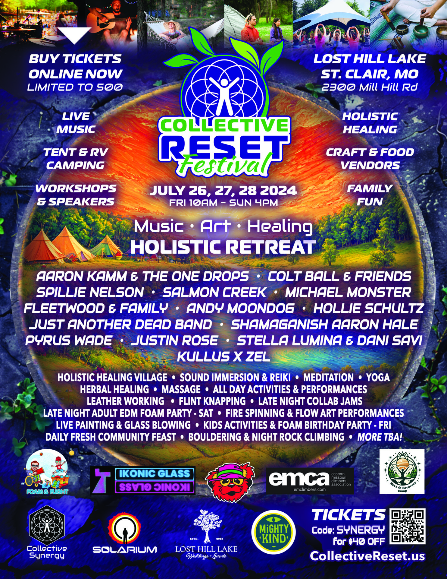 Welcome to Collective Reset! We are dedicated to transforming minds, lives, and communities through art, music, and holistic healing. This is a Festival-Retreat that aims to engage the mind, body, and spirit by focusing on positive intentions, sustainable living, and local resources.